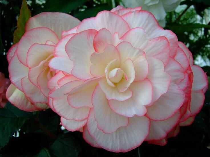 Begonia tubers. Shade-loving blooms with bright red petal edges.