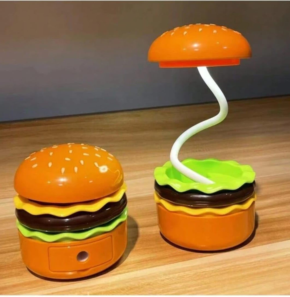 Light up your desk with the daringly delicious Burger Lamp With Sharpener! The perfect combination of functionality and fun, this lamp also includes a built-in sharpener for all your pencil sharpening needs. Take a risk and spice up your workspace with this bold addition!